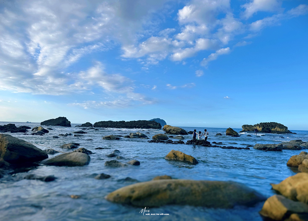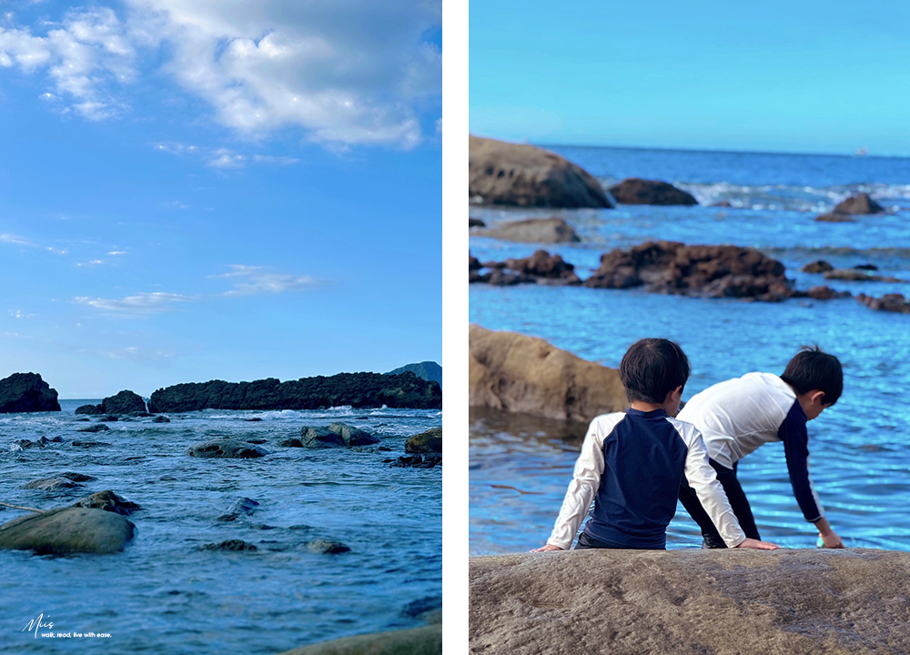 一如過往,夏秋兩季我們總是往有水域的地方跑,為了把米米兩兄弟的電量消耗完,還真是煞費苦心,這次選擇基隆的大坪海岸,秋天就是要去海邊啊!(為了弟弟的螃蟹)這裡是一片需要算準潮汐、才能走進的天然海岸地形。退潮時,岩石會被綠藻染上一層柔軟的毛毯,且擁有多樣化的海洋生物們。