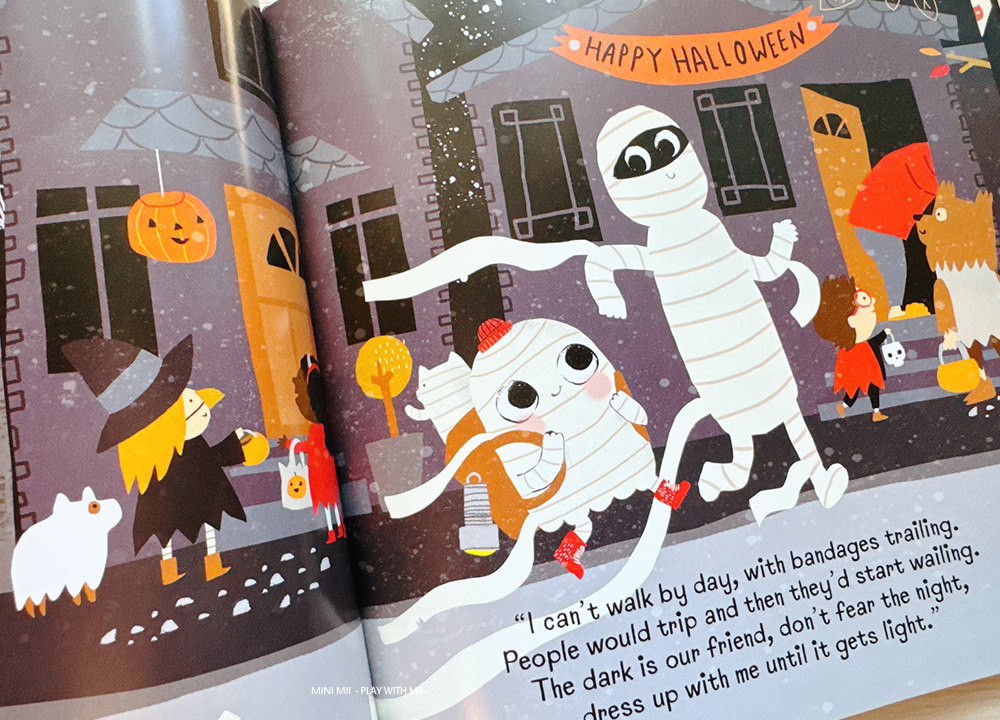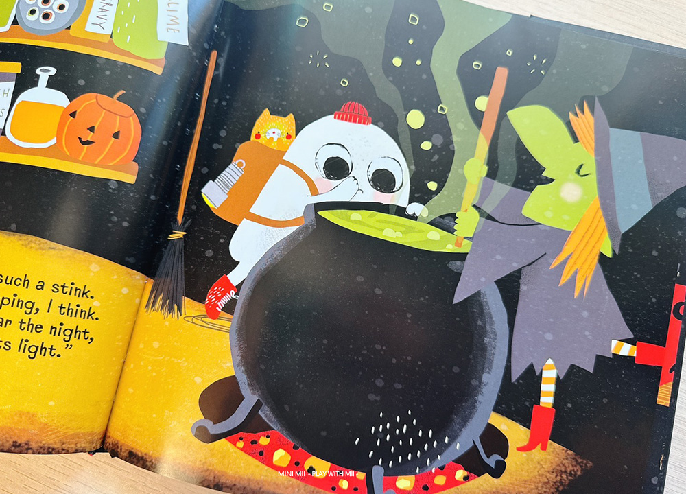 秋天的落葉堆裡,藏著一個大驚喜,Ollie發現了一隻小貓咪!故事裡有南瓜、落葉一整個充滿濃濃的萬聖節氣息。除了應景它帶來一種溫柔又魔幻的感覺。這本書很適合在親子共讀的時候拿來聊一聊照顧和責任,插圖細緻、色彩柔和,氣氛營造得剛剛好,萬聖節要的不只是搞怪,有時候也是一種暖暖的魔法。
