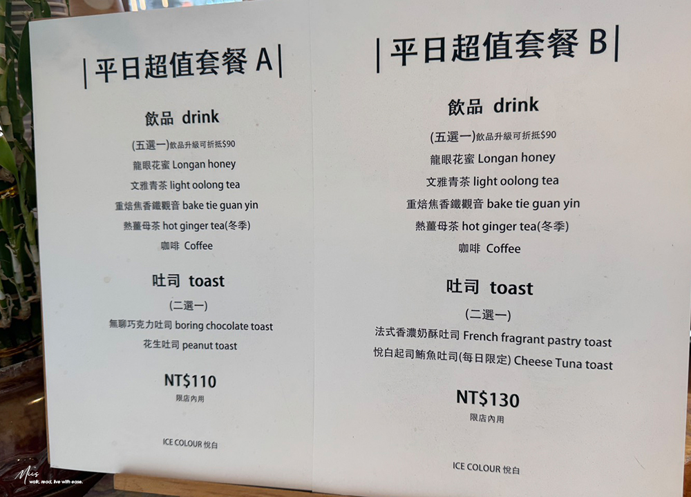 除了招牌水果雪花冰之外,店裡也提供多款飲品,像是蜂蜜檸檬、水果氣泡飲等清爽系選擇。即使不想吃冰,也能在這裡找到喜歡的飲品,也有套餐組合可以選擇。