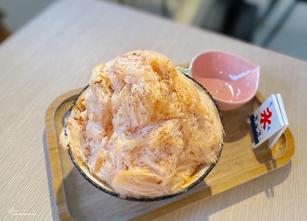 老闆非常熱情,我們剛踏進店裡,兩個小傢伙就被請上了一杯冰冰涼涼的蜂蜜檸檬汁。酸甜的味道在炎熱午後格外清爽,還沒等雪花冰上桌,又貼心送上 古早味小點心招待。用心的小細節,讓人覺得等待冰品製作的時間不再漫長。