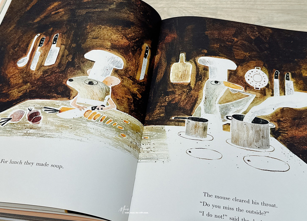 腦洞大開的寓言故事!荒謬卻充滿哲理,在其中看見面對困境的另一種思考方式。在無法改變現狀時,有人選擇逃避,有人選擇抱怨,但鴨子和老鼠選擇改變心態。既然出不去,那就把這裡變成自己的家,這種幽默又灑脫的態度,正是生活中最難做到的。
