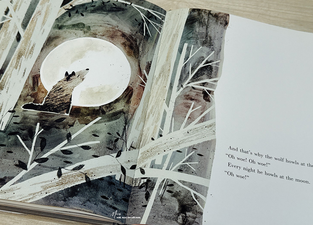 就這樣鴨子和老鼠繼續開開心心的住在野狼肚子裡,但也因為他們經常在party搞得野狼肚子痛,所以現在你知道為何野狼都會嚎叫了吧!
